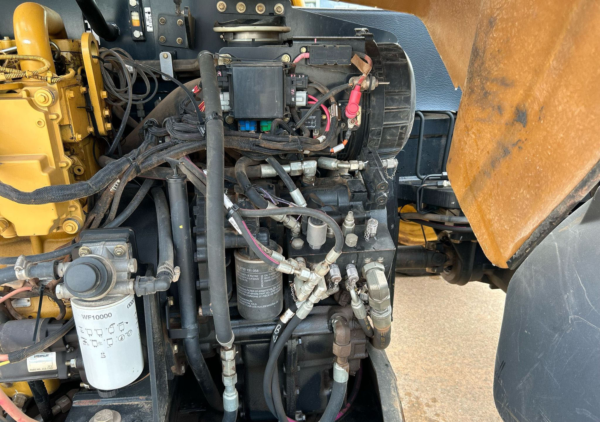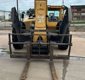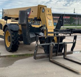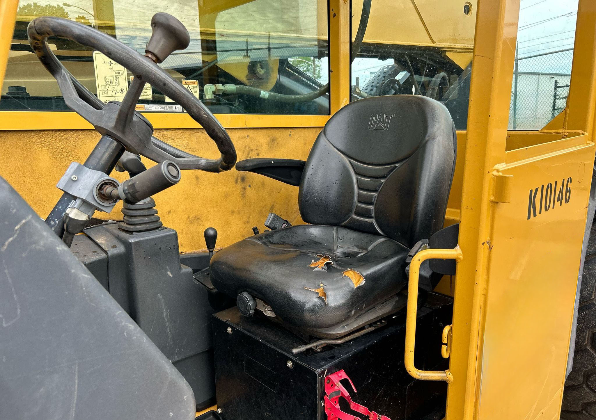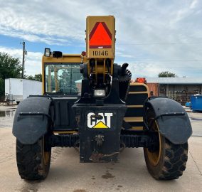 2012 Caterpillar TL943 telehandler with 3,108 hours. Powered by a 4.4L Caterpillar C4.4 Acert diesel engine and powershift transmission with 4F - 4R, four-wheel drive. Features a canopy, crab and four-wheel steering, auxiliary hydraulics, hydraulic outriggers, and hydraulic leveling. Maximum lift capacity of 9,000 lbs and maximum lift height of 43'. Equipped with 48" fork length and 370.75-28 tires.