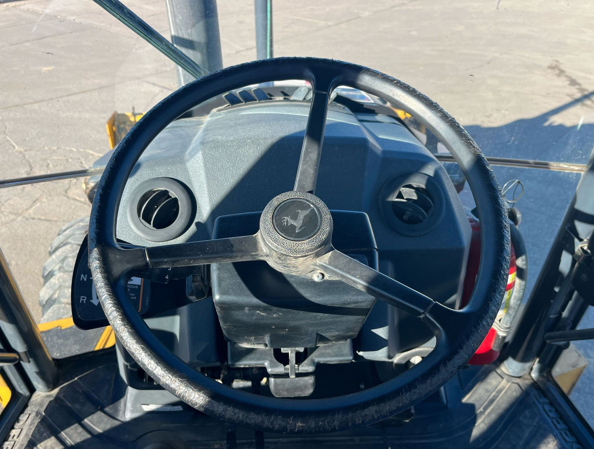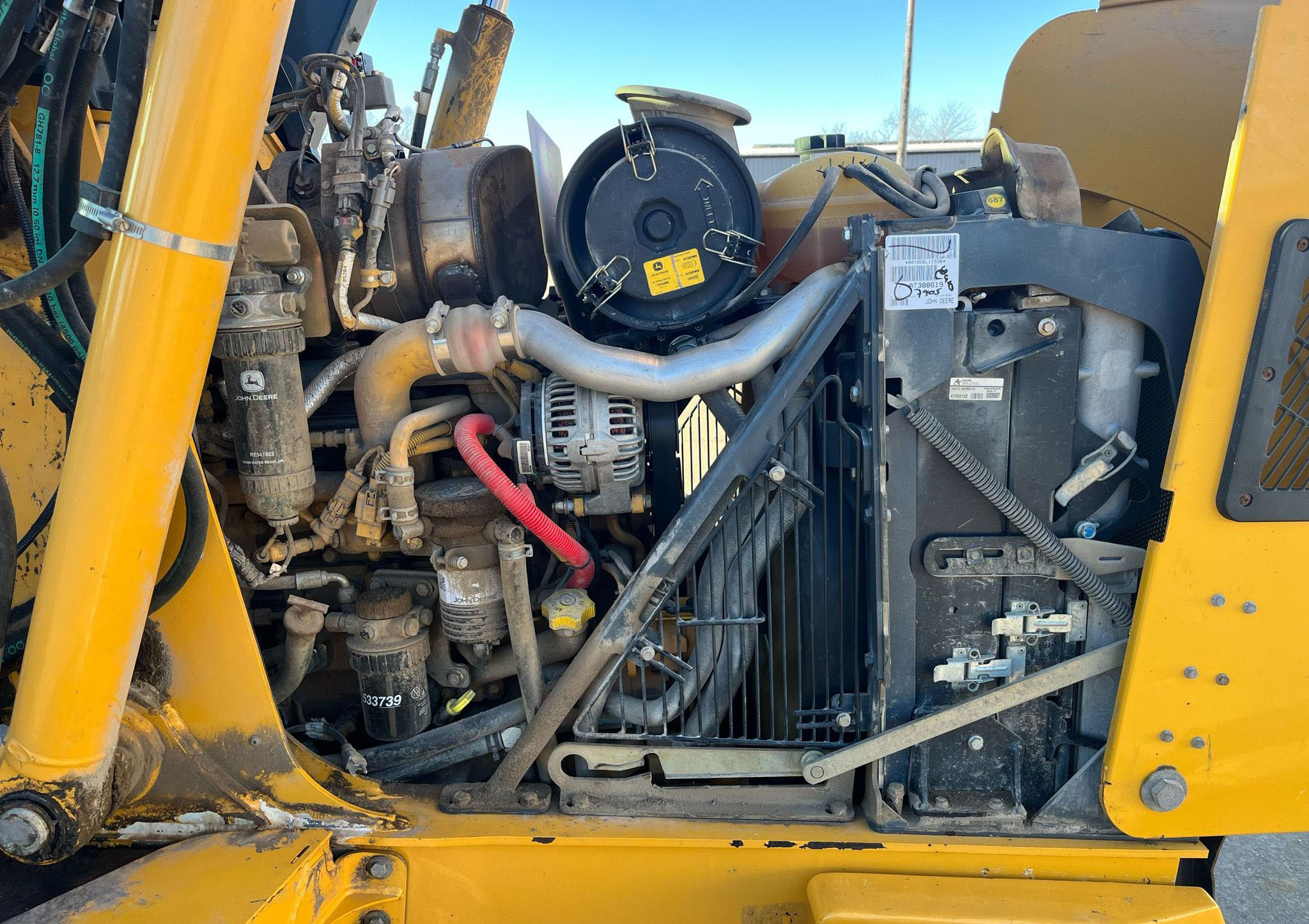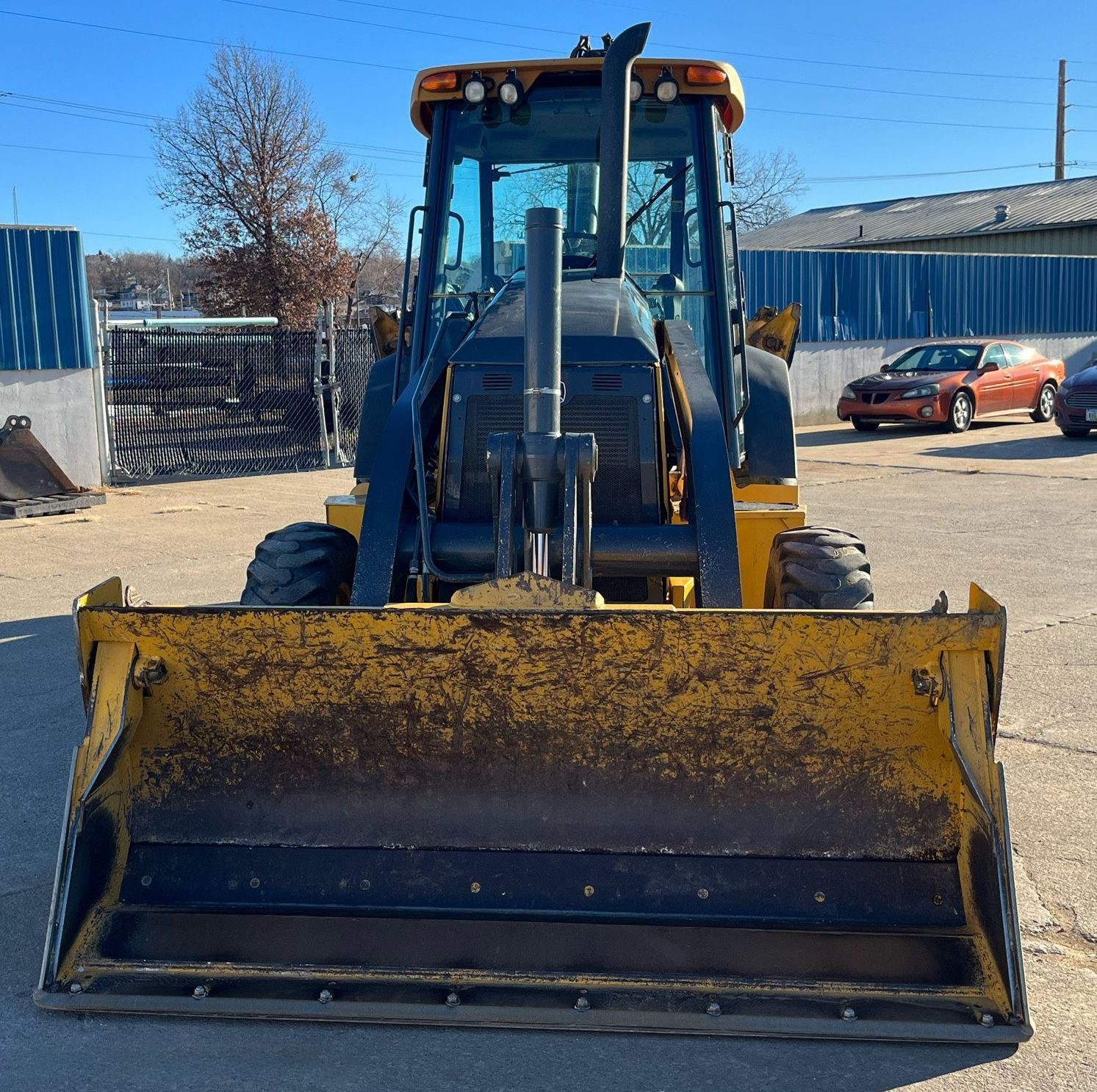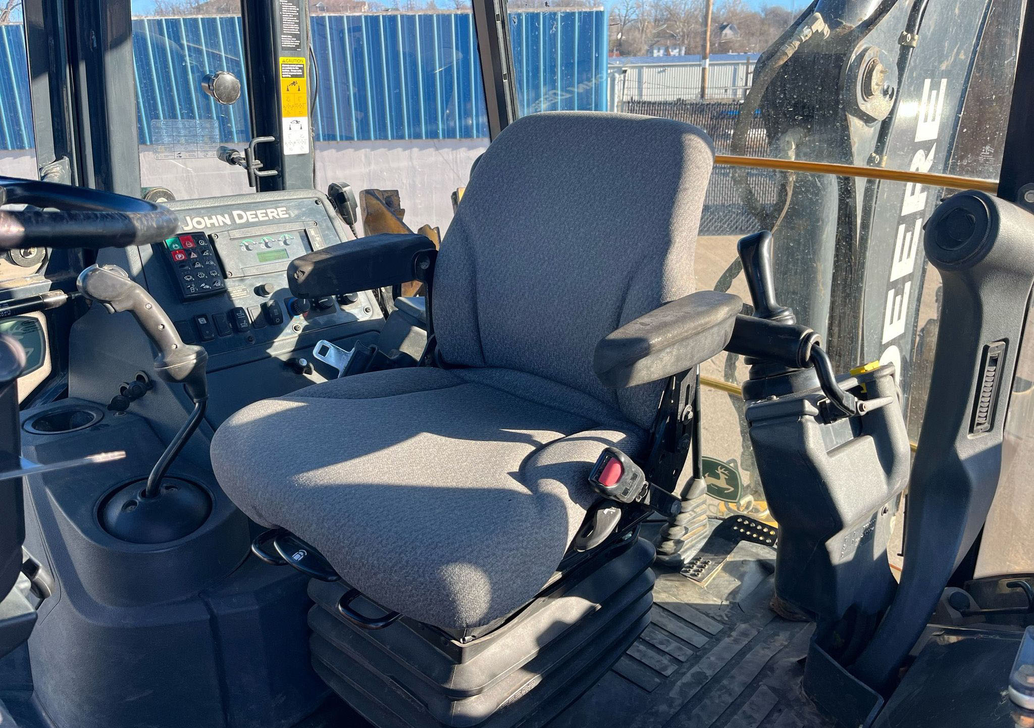 2013 John Deere 310SK backhoe with 3,582 hours. Powered by a 4-cylinder diesel engine and equipped with a powershift transmission (4F-4R) and four-wheel drive with differential lock. Features an enclosed cab with AC and heat, pilot-controlled backhoe with pattern changer, and a four-in-one loader bucket (91" wide with bolt-on cutting edge). The backhoe includes an extendable stick, manual quick coupler, and a 24" bucket with 5 teeth. Tires are 12.5/80R18 in the front and 19.5L-24 in the rear.