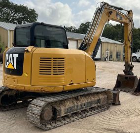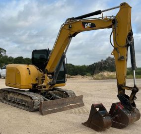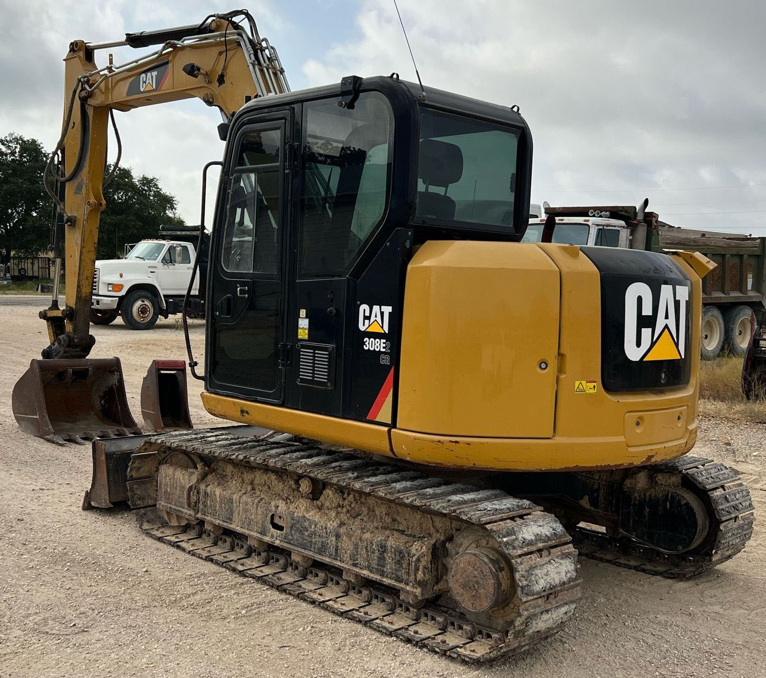 The 2016 Caterpillar 308E2 CR mini excavator is powered by a 4-cylinder, 3.3L Caterpillar C3.3B diesel engine with 1,784 hours. It features a hydrostatic transmission with two-speed travel, EROPS with AC and heat, and auxiliary hydraulics. The machine is equipped with a mechanical quick coupler, a 36" Caterpillar bucket with 6 teeth, a 12" bucket with 3 teeth, and a 7' 2" stick. It also includes a backfill blade, 92" width, steel tracks with triple grouser pads, and rubber track pads. A reliable and versatile unit for various excavation tasks.